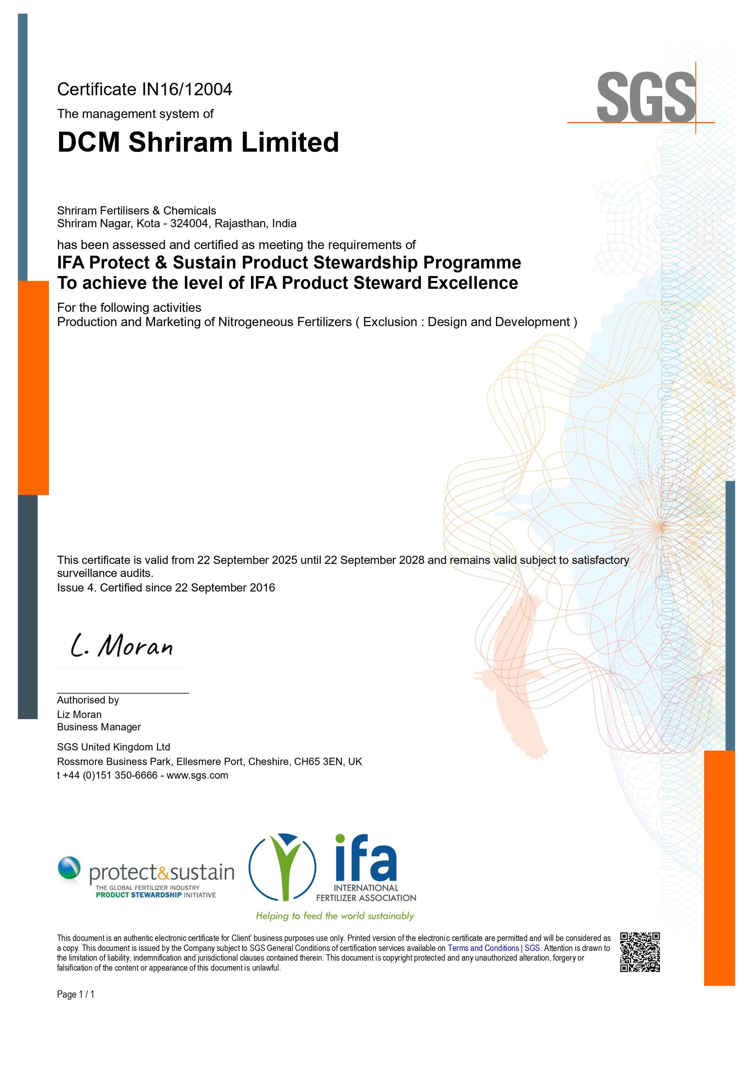 We have an integrated management system comprising ISO9001, ISO14001 and ISO45001 at our major manufacturing locations including Fenesta and Shriram Farm Solutions businesses.